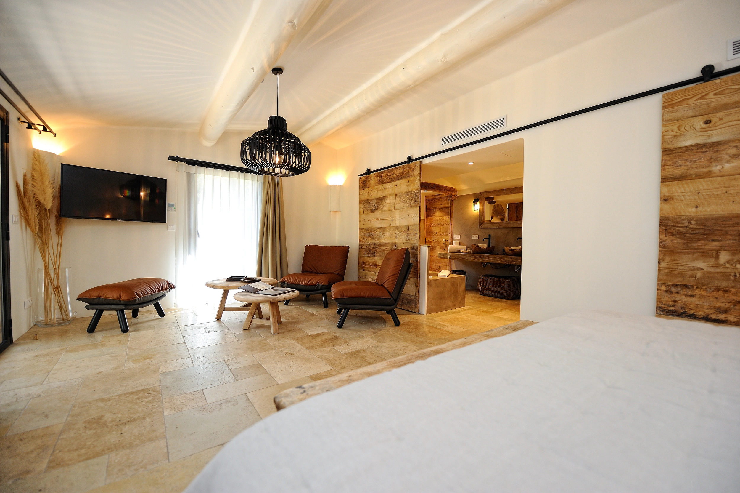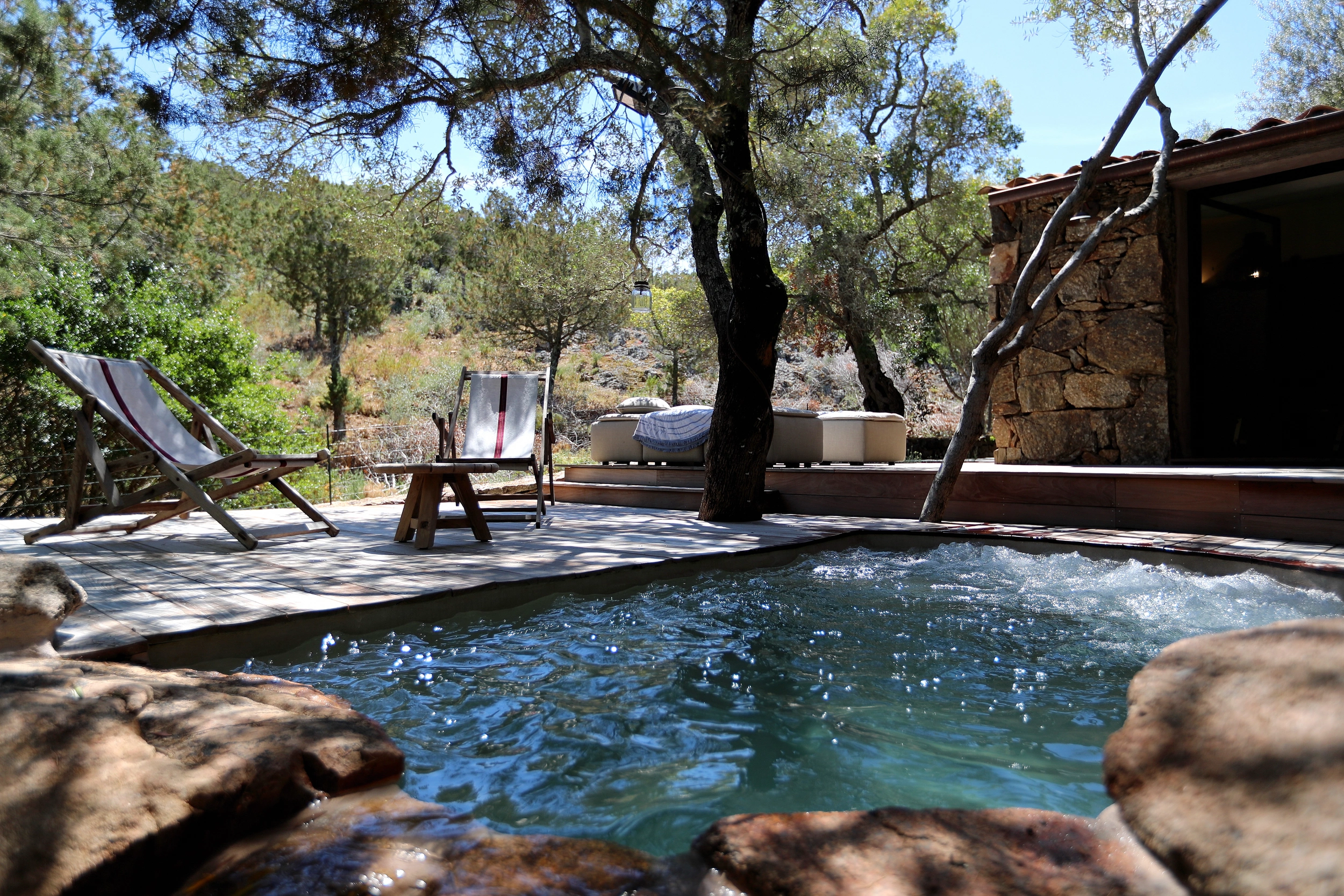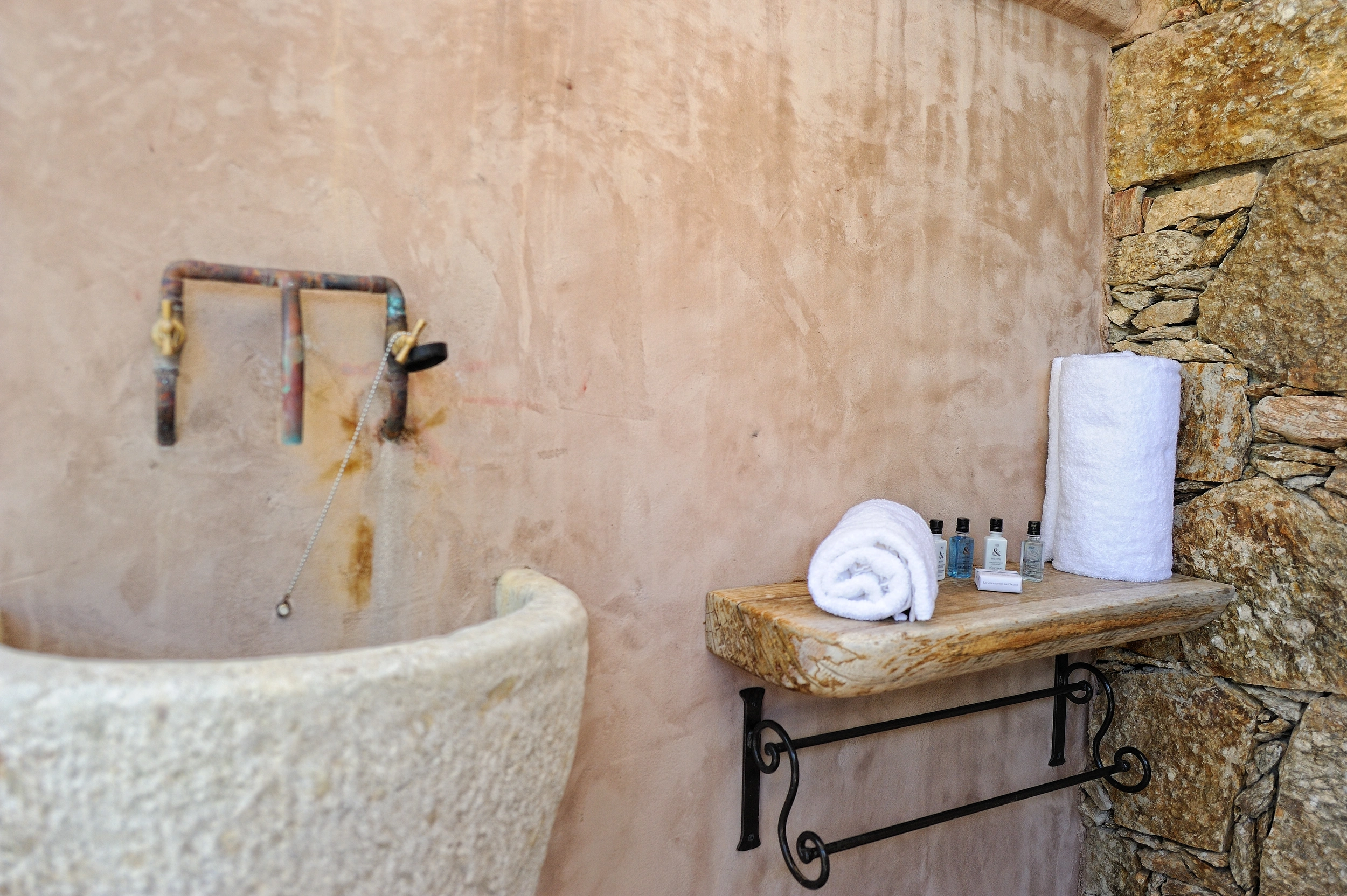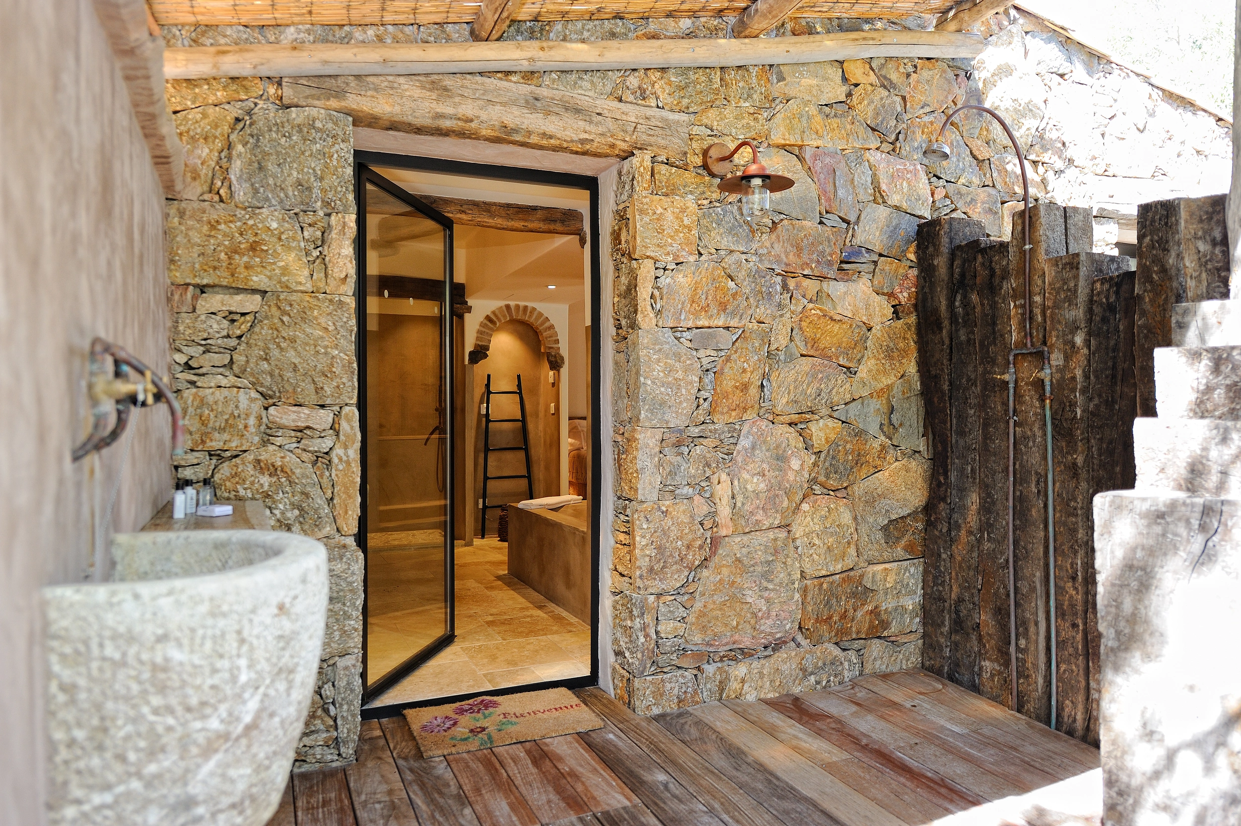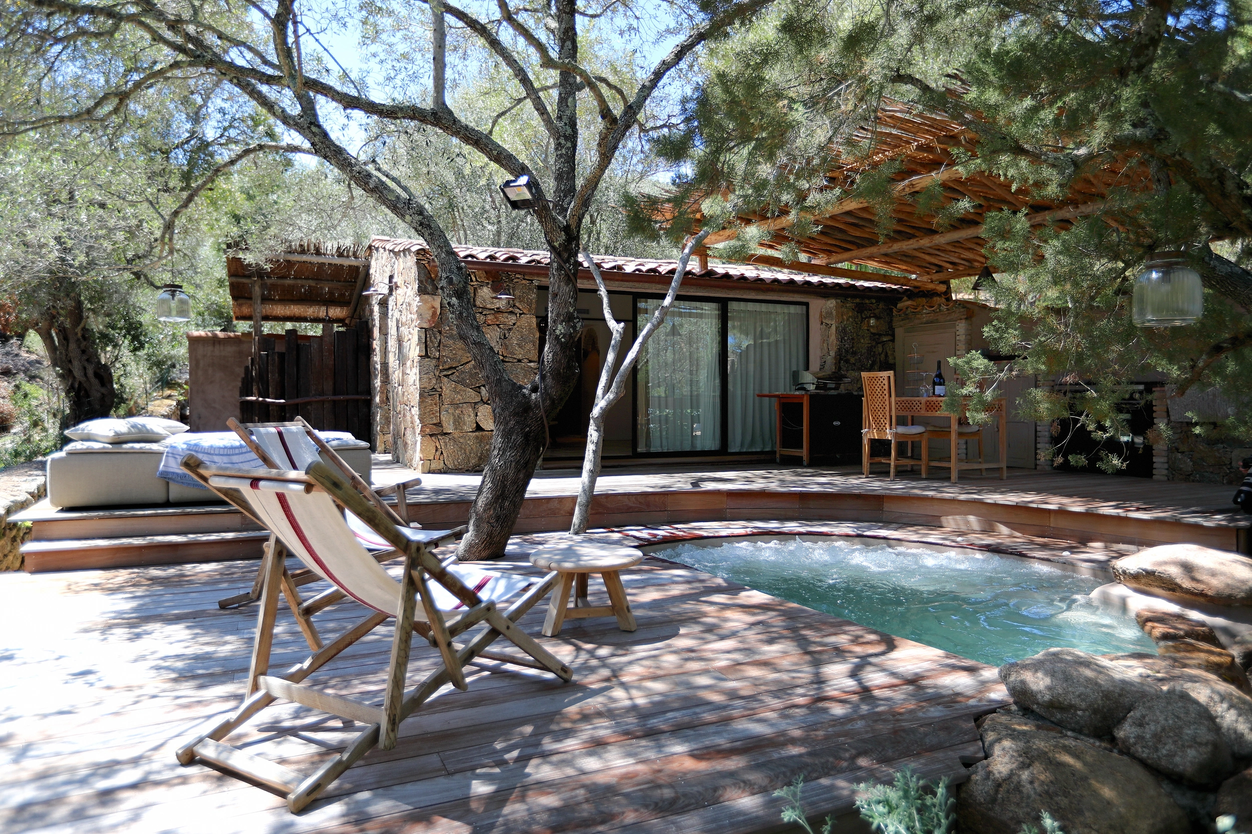 Dissimulée derrière son majestueux mur de pierre, Casarella Spa se tourne vers le maquis, incarnant ainsi la promesse d’un séjour d’une quiétude sans équivoque. Dotée d’un bain à remous privé, d’une décoration mêlant bois chaleureux et pierre brute, ainsi qu’une terrasse ombragée par les oliviers, elle constitue une invitation au repos total.