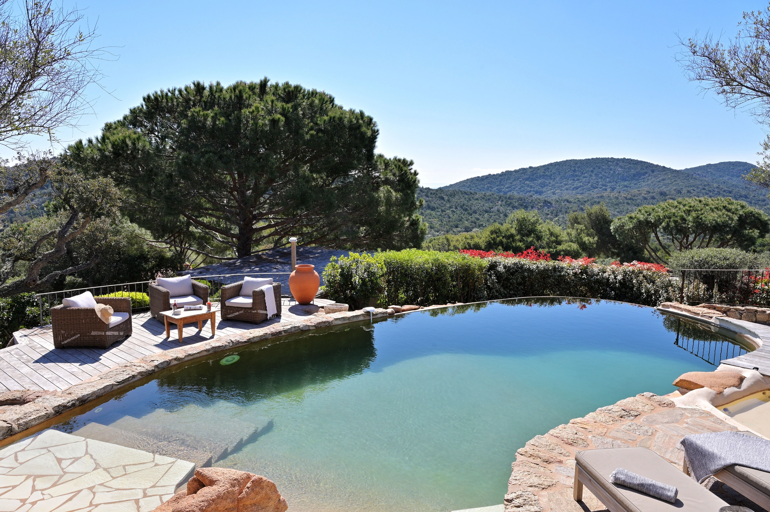 Dominant la baie de Palombaggia, la Villa Sperone propose un cadre d’exception. Enlacée par la végétation typique de l’île, cette villa à l’architecture méditerranéenne vous accueille dans des espaces lumineux. À l’extérieur, une piscine chauffée, une cuisine d’été tout équipée et un espace dinatoire avec vue sur la mer vous promettent vos plus belles soirées d’été. Laissez-vous envahir par l’atmosphère sereine de cette villa où chaque détail est pensé pour vous garantir un séjour des plus romanesques.